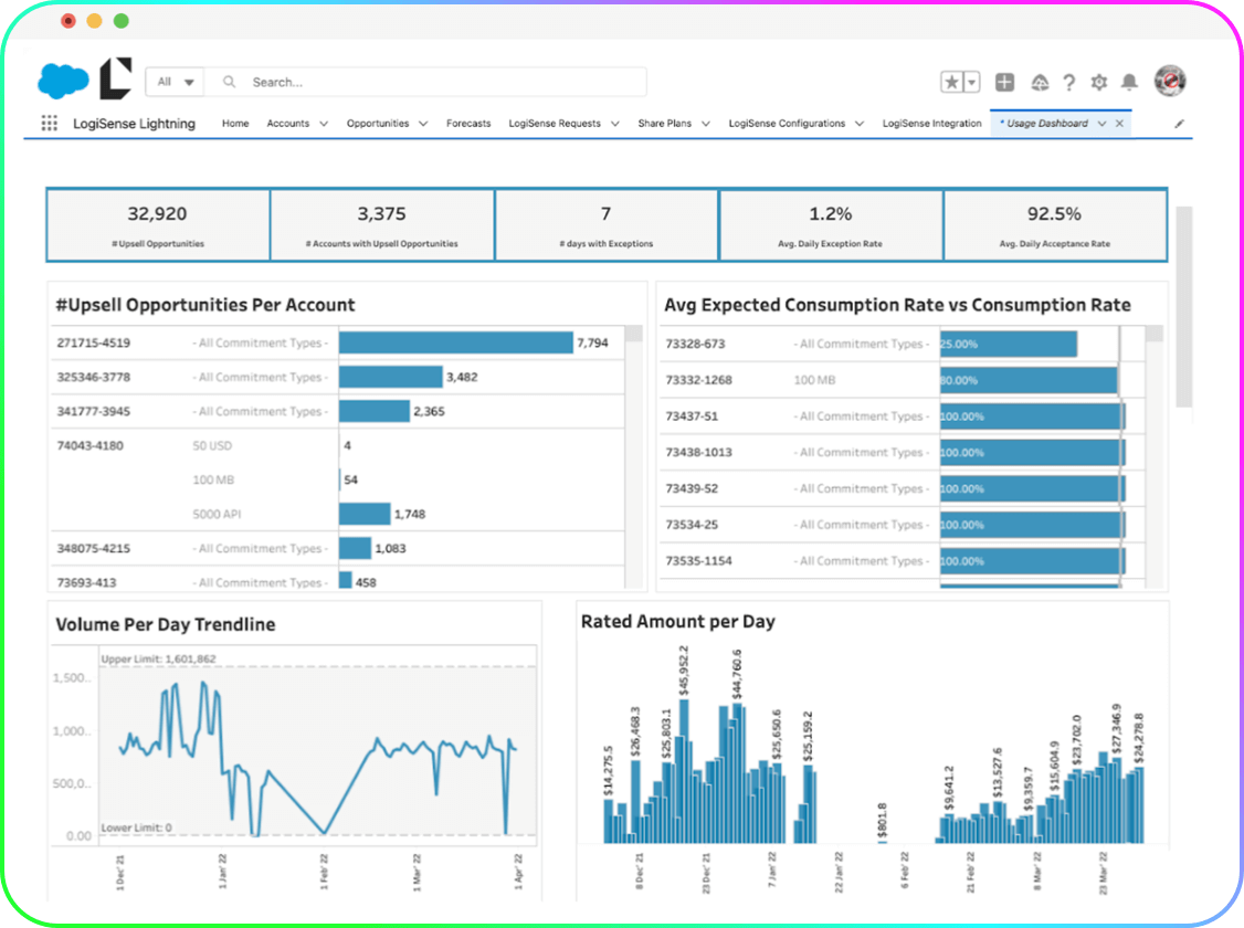 LogiSense's Salesforce Dashboard improves customer experience and reduces churn. Help customers avoid overage charges and find new sales opportunities.